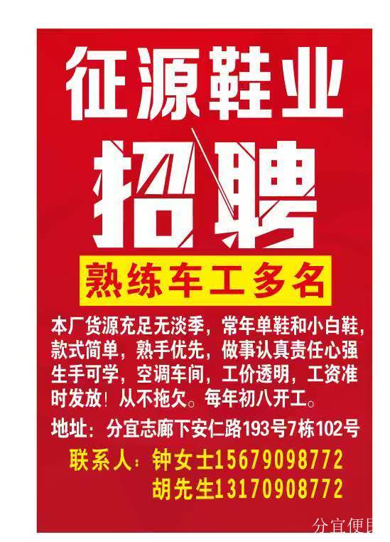 分宜简致箱包厂招工 招熟练箱包高车师傅4名,熟练缝纫工5名